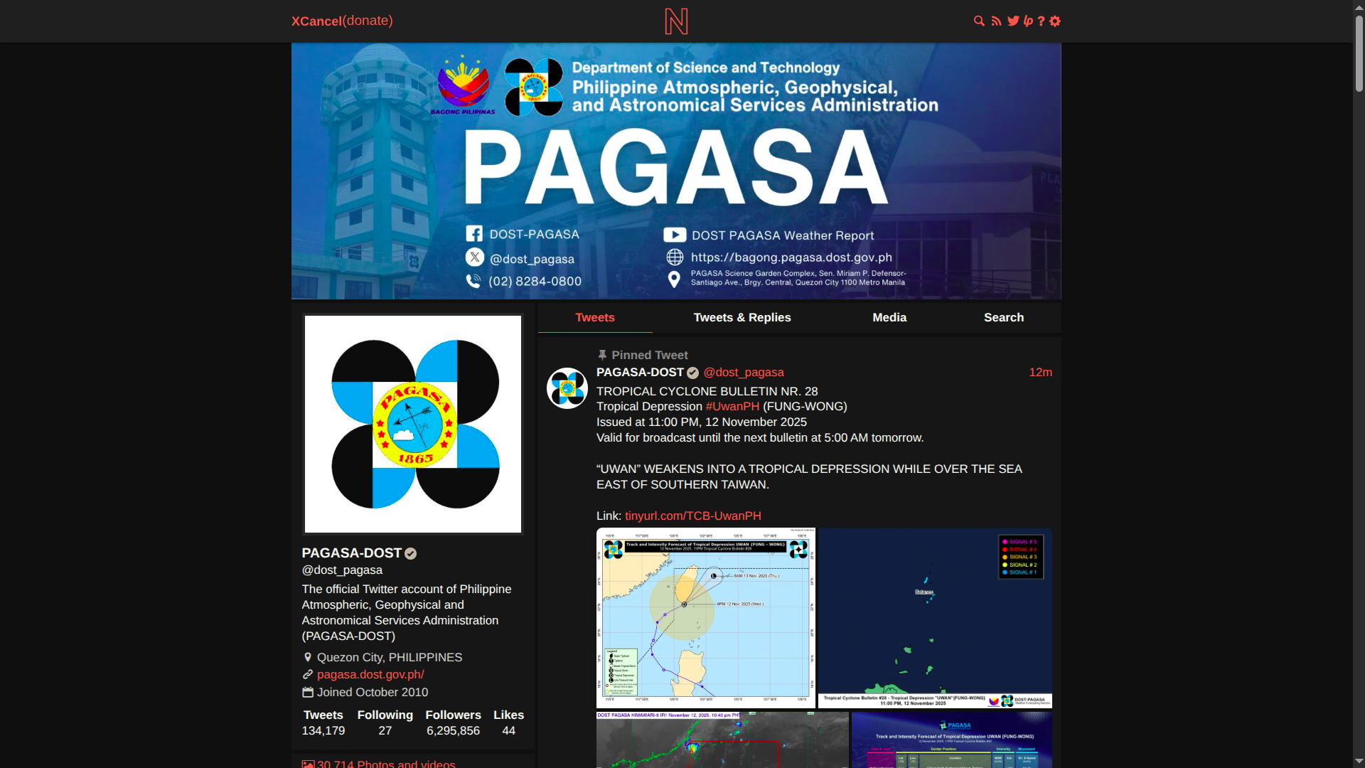 If you use RSS reader, you can subscribe to their media RSS at https://x.com/dost_pagasa/rss.